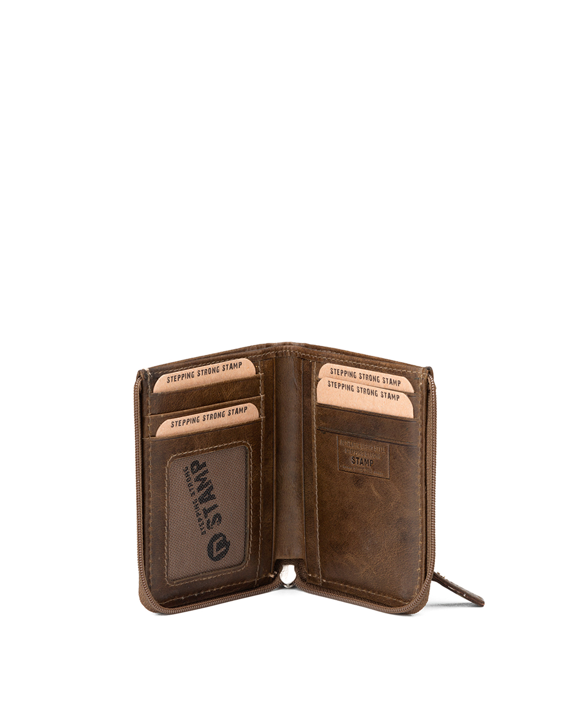 Billetero vertical en piel vacuno de primera calidad. La colecci贸n West destaca por su estilo r煤stico y su material聽 muy resistente. Como el modelo ST3324, compacto y pr谩ctico: