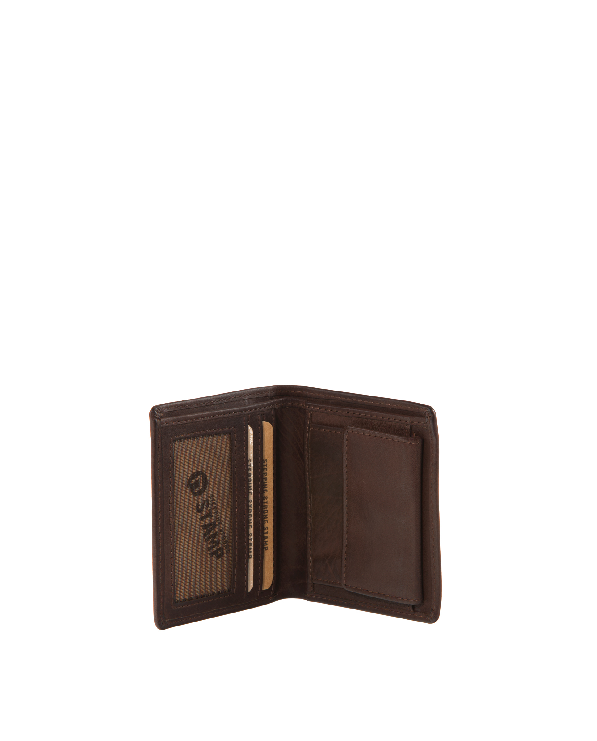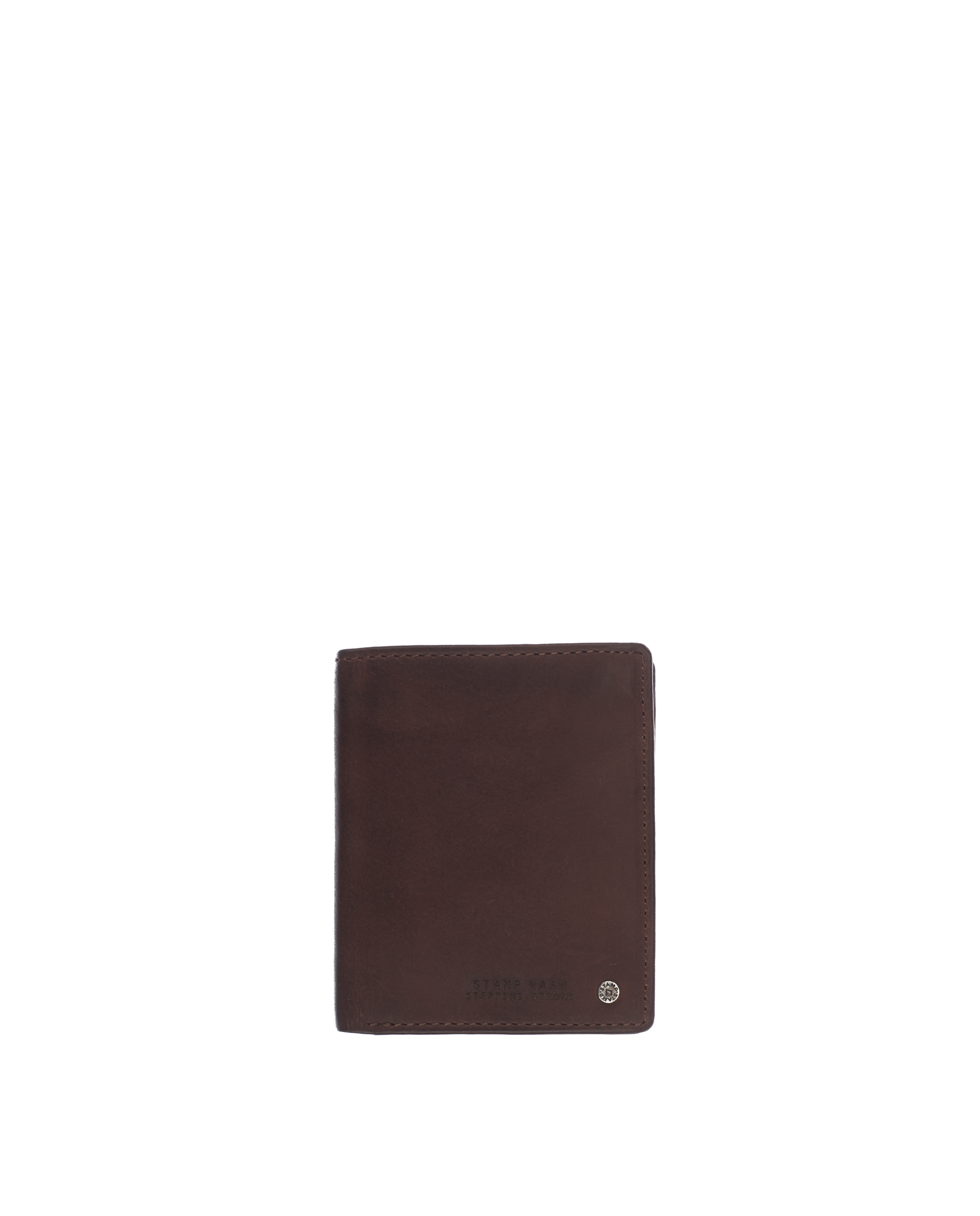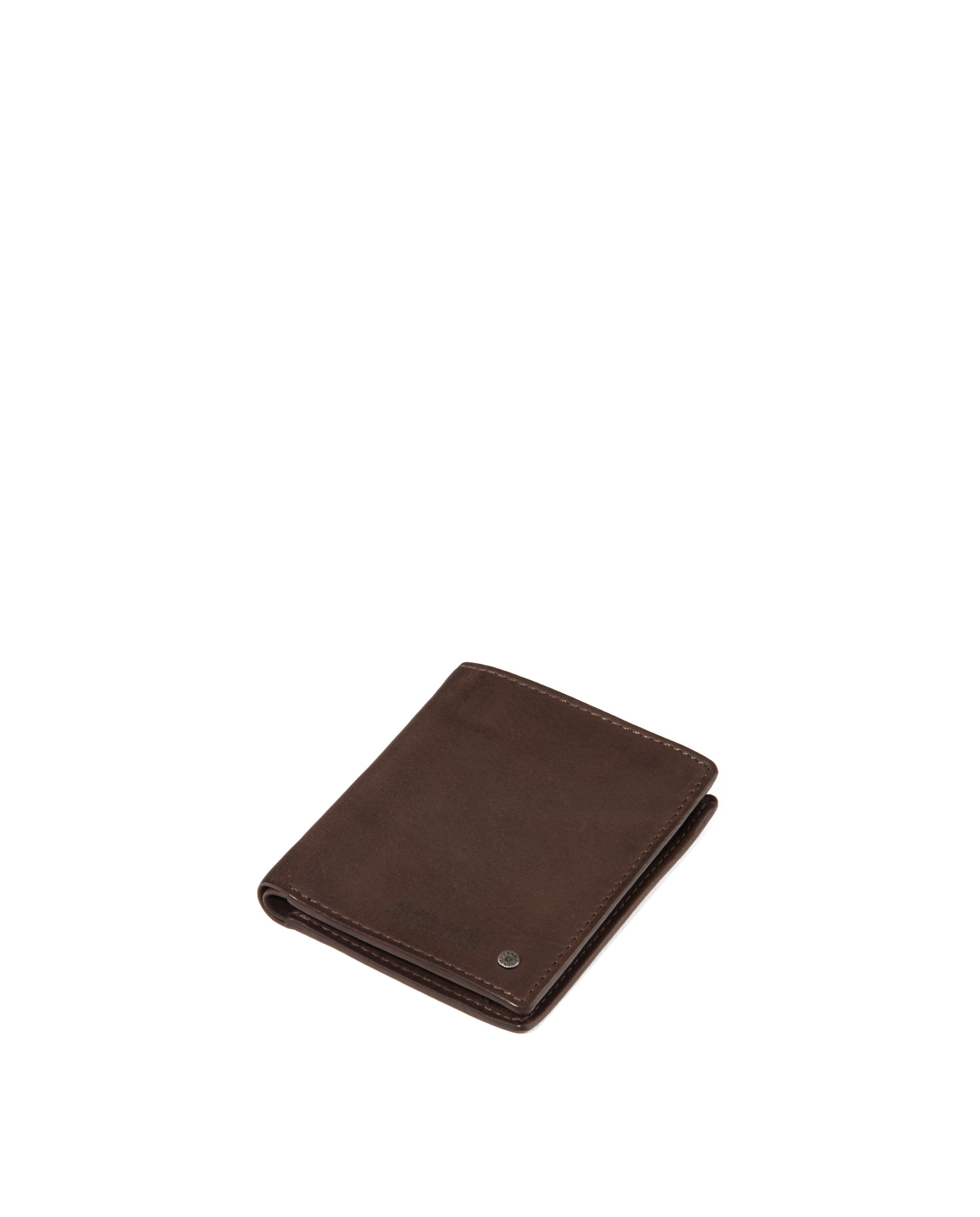 Billetero vertical en piel vacuno lavada. En el interior dispone de un departamento para billetes, 4 apartados para tarjetas y un portamonedas. Logo grabado a fuego. Colecci贸n Atlas.