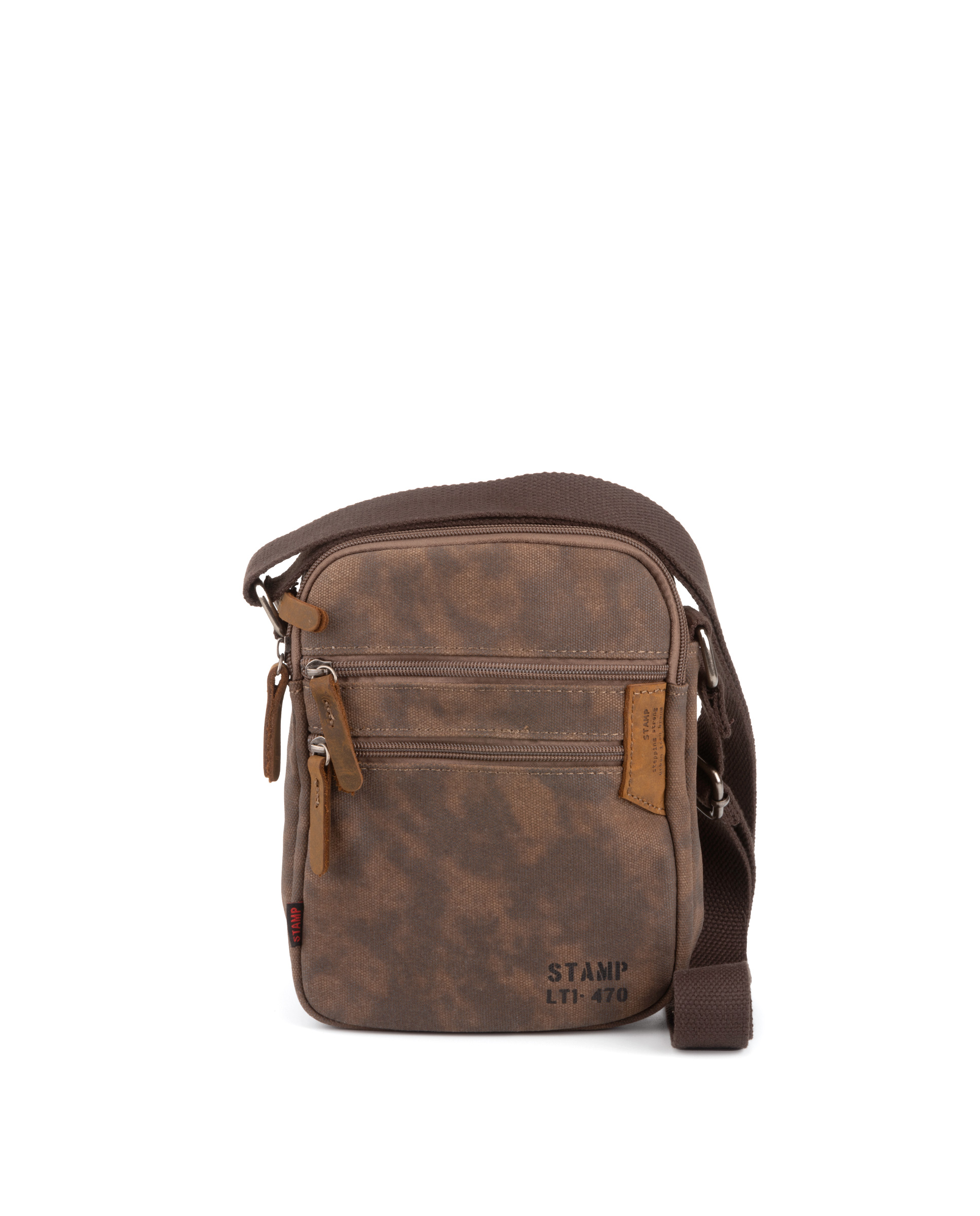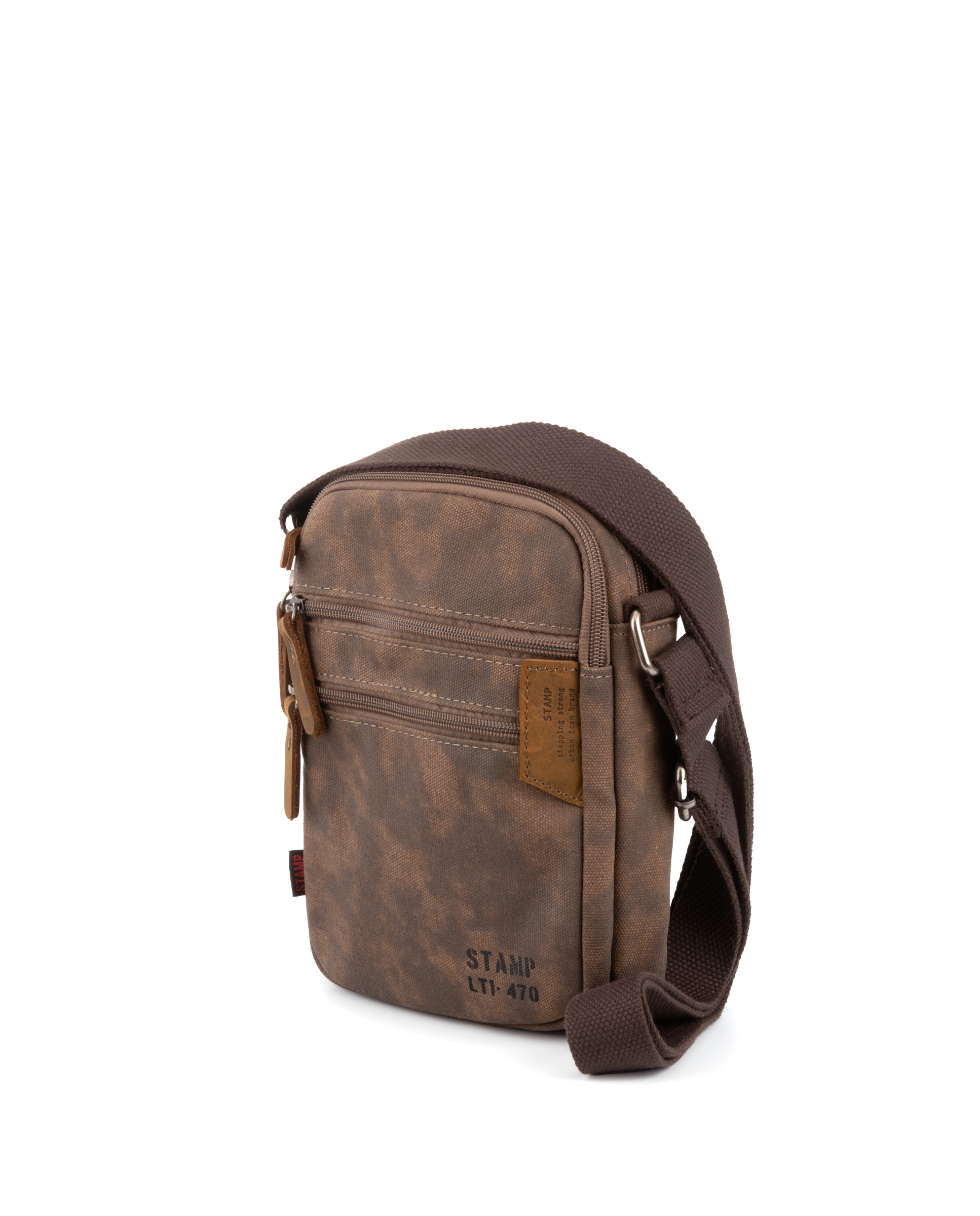Bolso bandolera ST4732 para hombre en lona encerada de color marr贸n