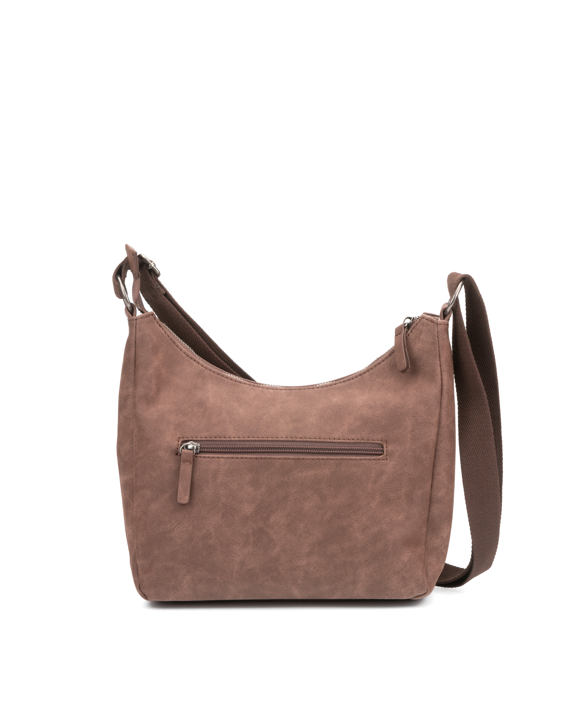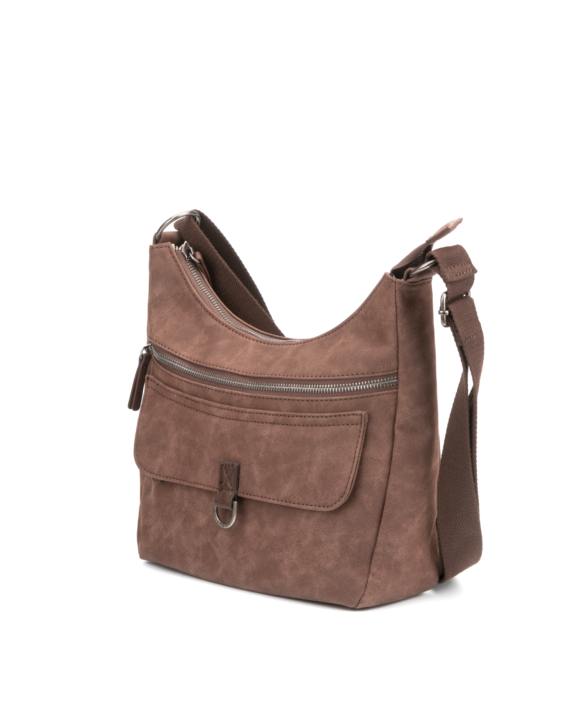 Bolso de señora en ecopiel fabricado en ecopiel con efecto antelina, convertible en mochila. Dispone de dos bolsillos con cremallera, uno en la parte frontal y otro en la parte trasera. Otra cremallera en la parte trasera superior da acceso al departamento principal. Dispone tanto de asa superior como de bandolera larga. Dependiendo de como enganchemos la bandolera, podremos llevarlo como un bolso, al hombro, o como una mochila. Pertenece a la colección Hydra que se compone de tres bolsos, dos mochilas y un bolso/mochila. Disponible en cuero, kaki y negro