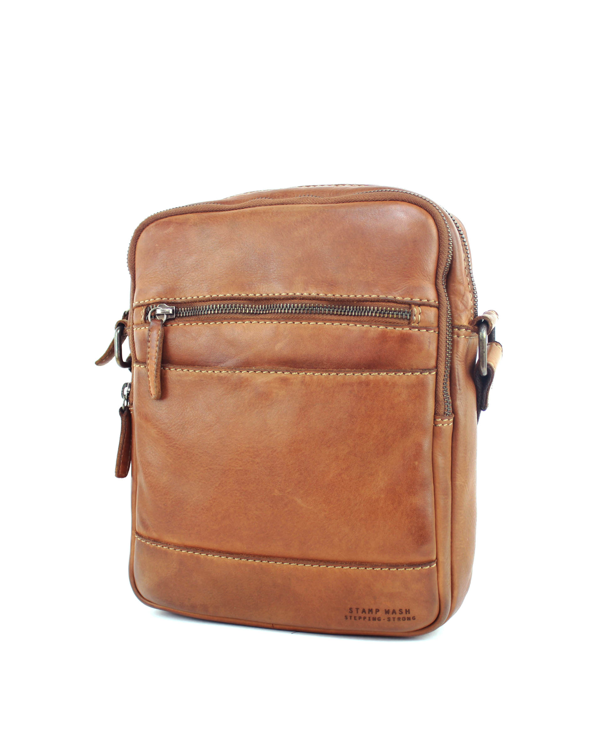 Bolso grande de hombre ST133 Tichi en piel lavada color cuero