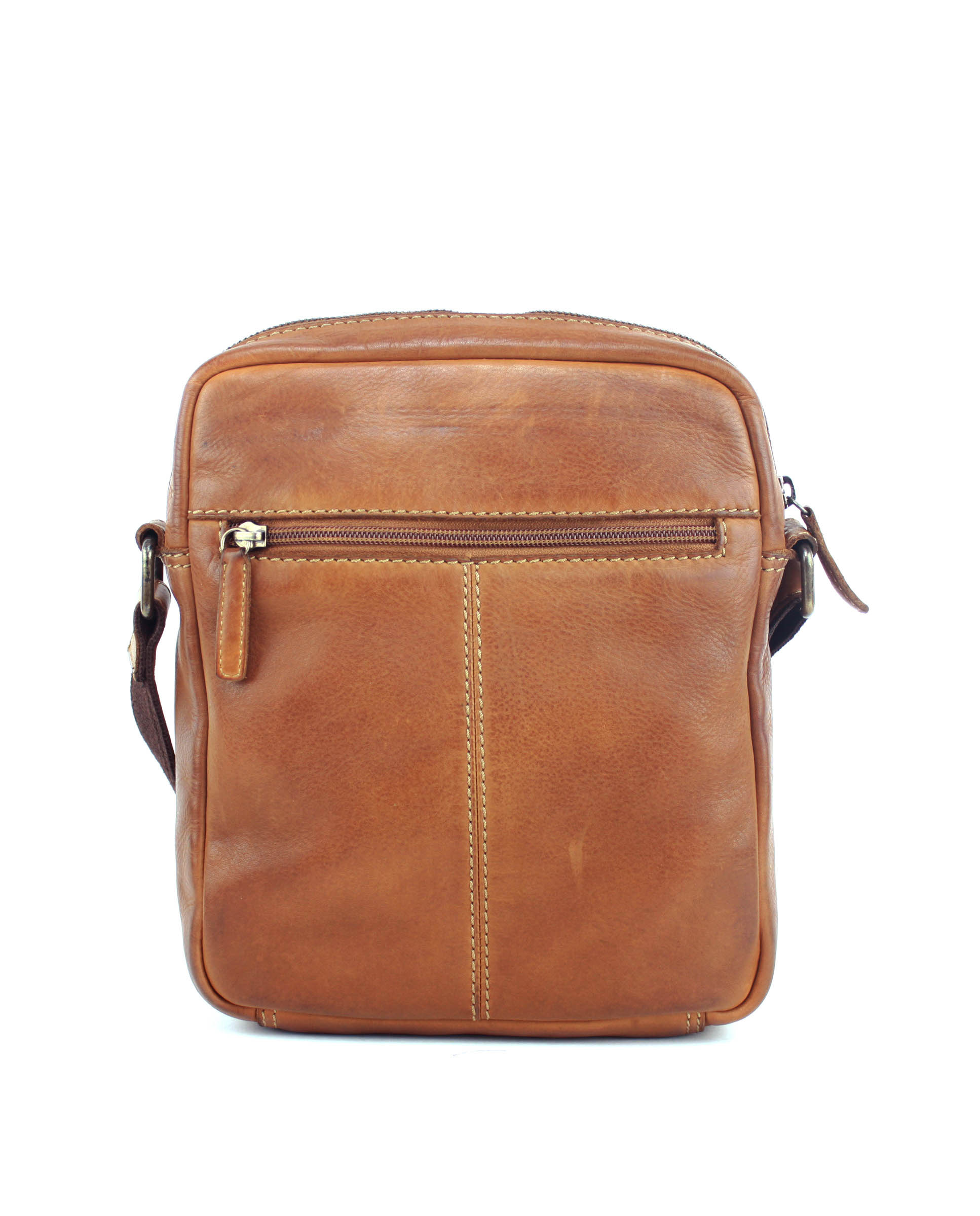 Bandolera en piel lavada de primera calidad, para llevar al hombro o cruzada. Pertenece a la colecci贸n Tichi, una colecci贸n de ri帽oneras, mochilas y bolsos en piel de aspecto r煤stico y muy resistentes. Como el modelo ST133, fabricado con los mejores materiales en color cuero: