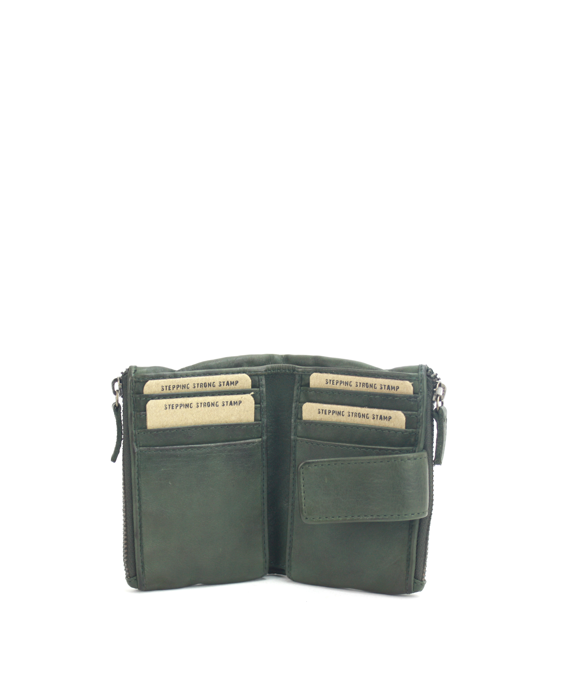 Cartera compacta en piel lavada Shaula ST96614 verde kaki