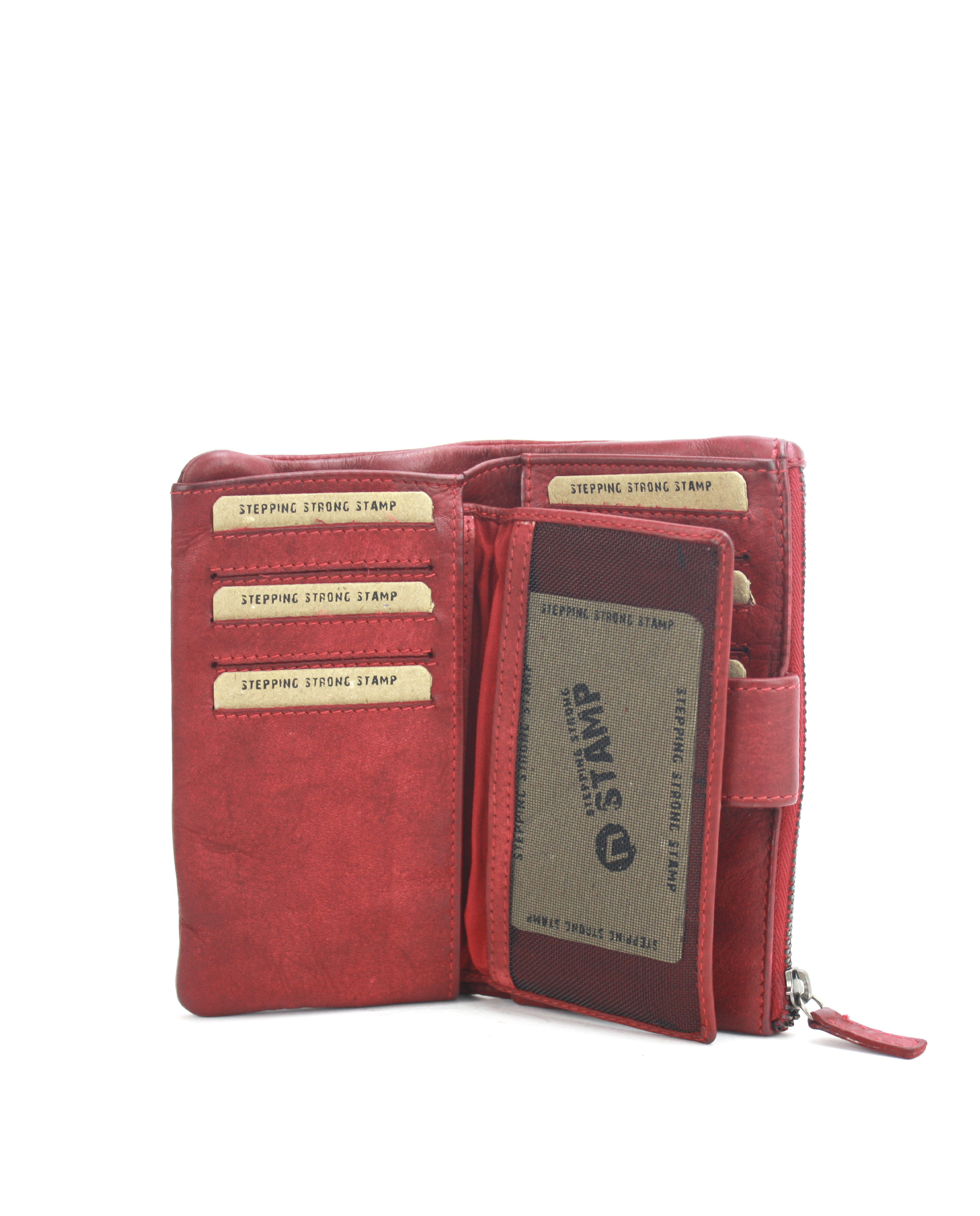 Cartera de mujer fabricada en piel lavada de primera calidad. La colecci贸n Shaula de Stamp sigue pisando fuerte y se ve ampliada con nuevos colores. Nuestra billetera ST96613, fabricada con los mejores materiales, tiene todo el espacio que necesitas: