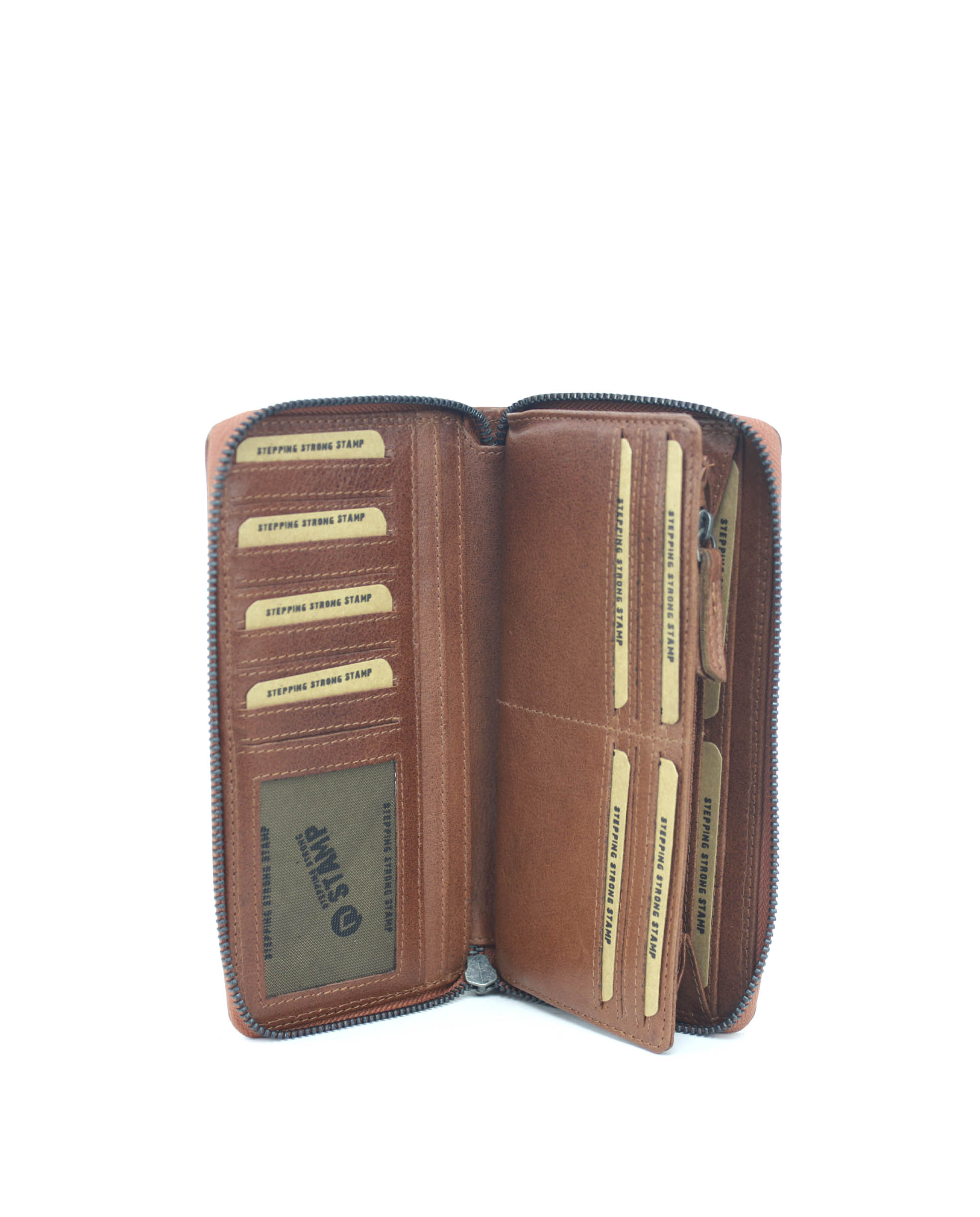 Cartera de mujer fabricada en piel lavada de primera calidad. La colecci贸n Chara de Stamp sigue pisando fuerte y se ve ampliada con nuevos modelos, desde mochilas hasta toda una nueva l铆nea de billeteros. Como nuestra cartera ST32002, fabricada con los mejores materiales, en color cuero y con mucho espacio para ti: