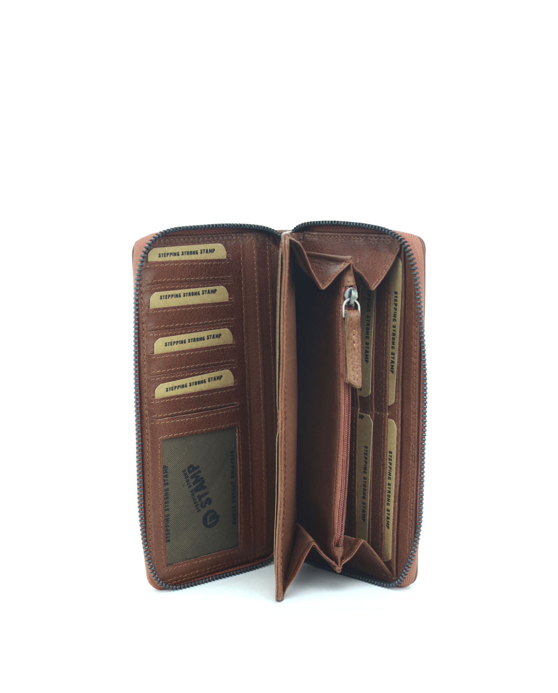 Cartera grande de mujer en piel lavada ST32002 Chara color cuero
