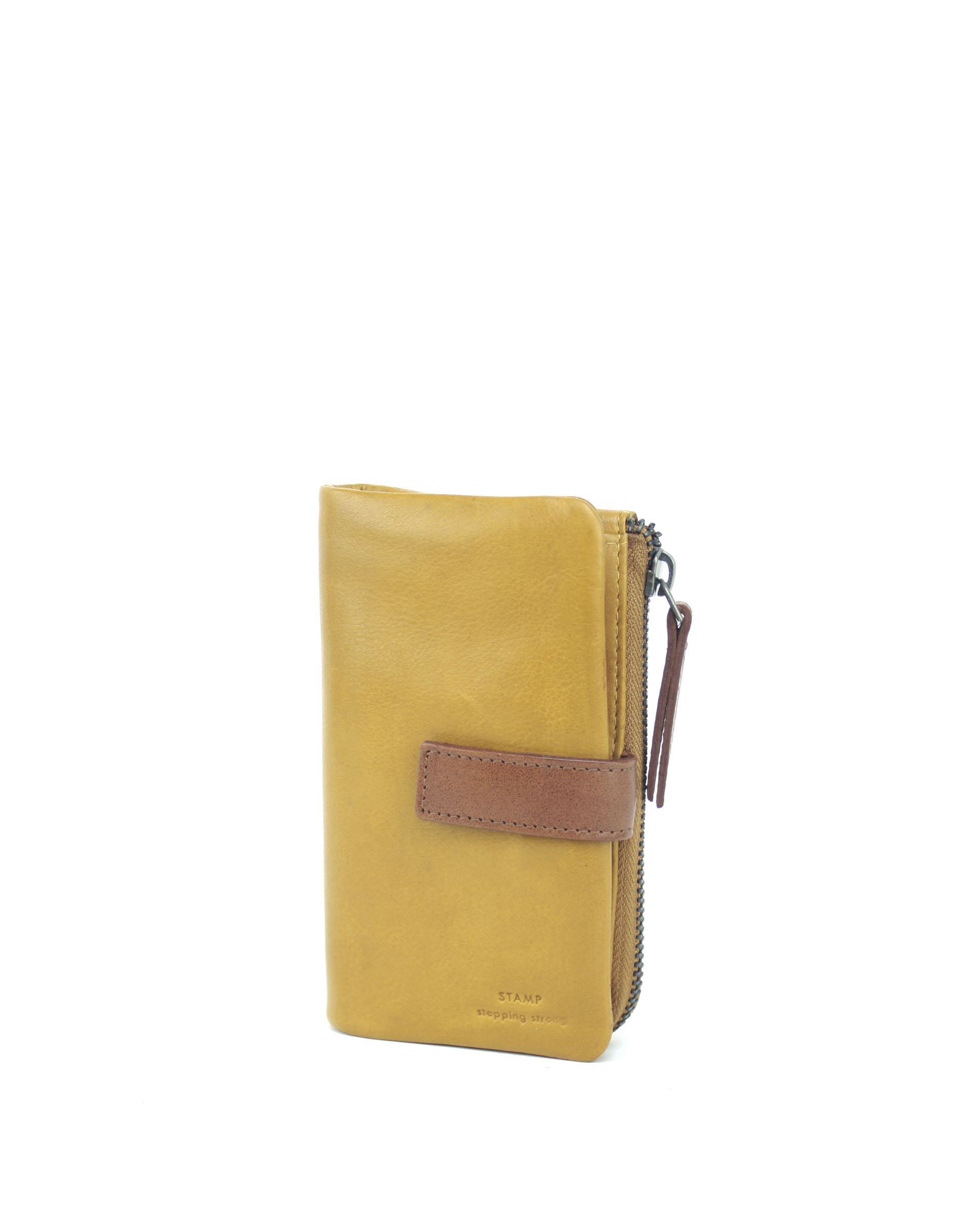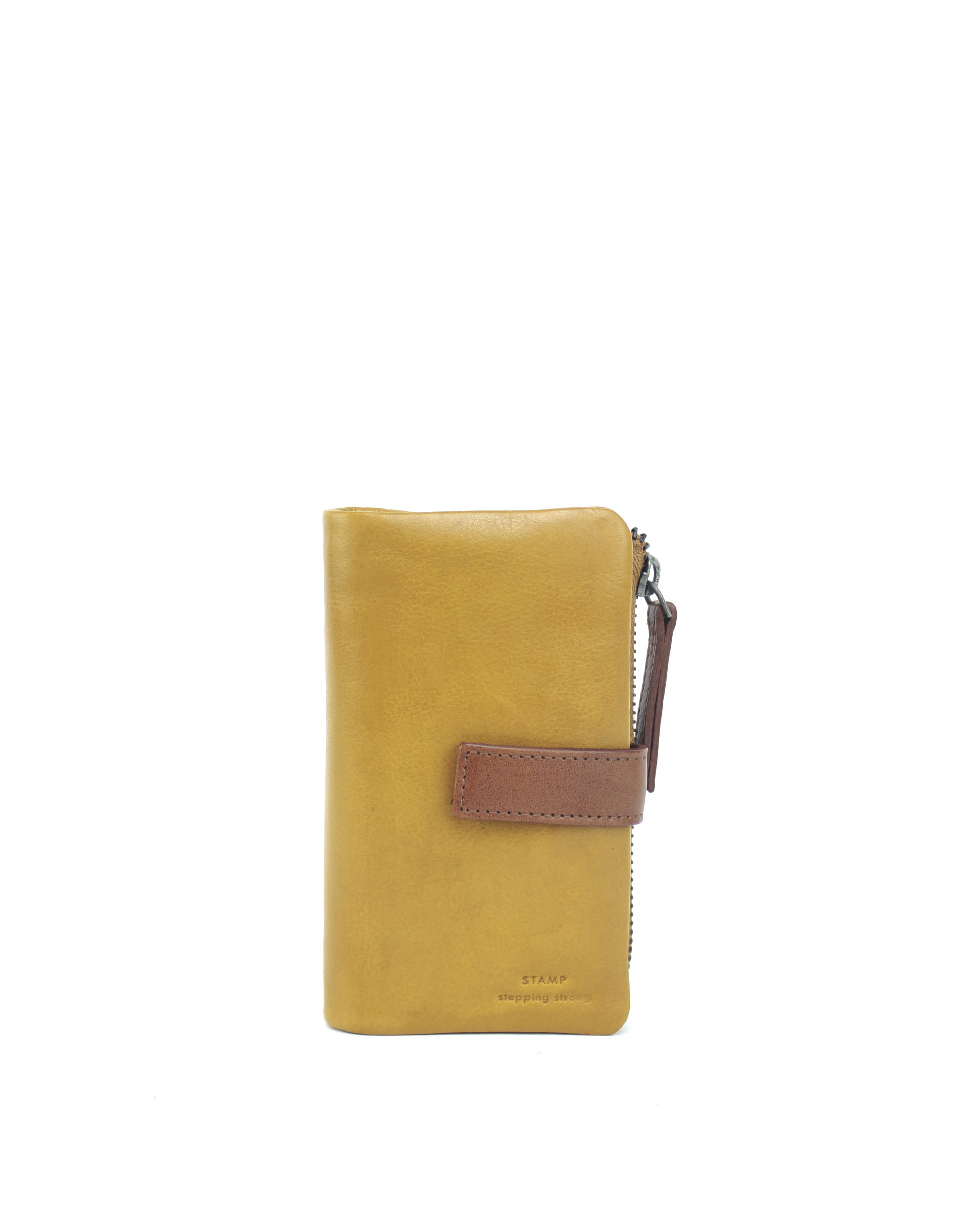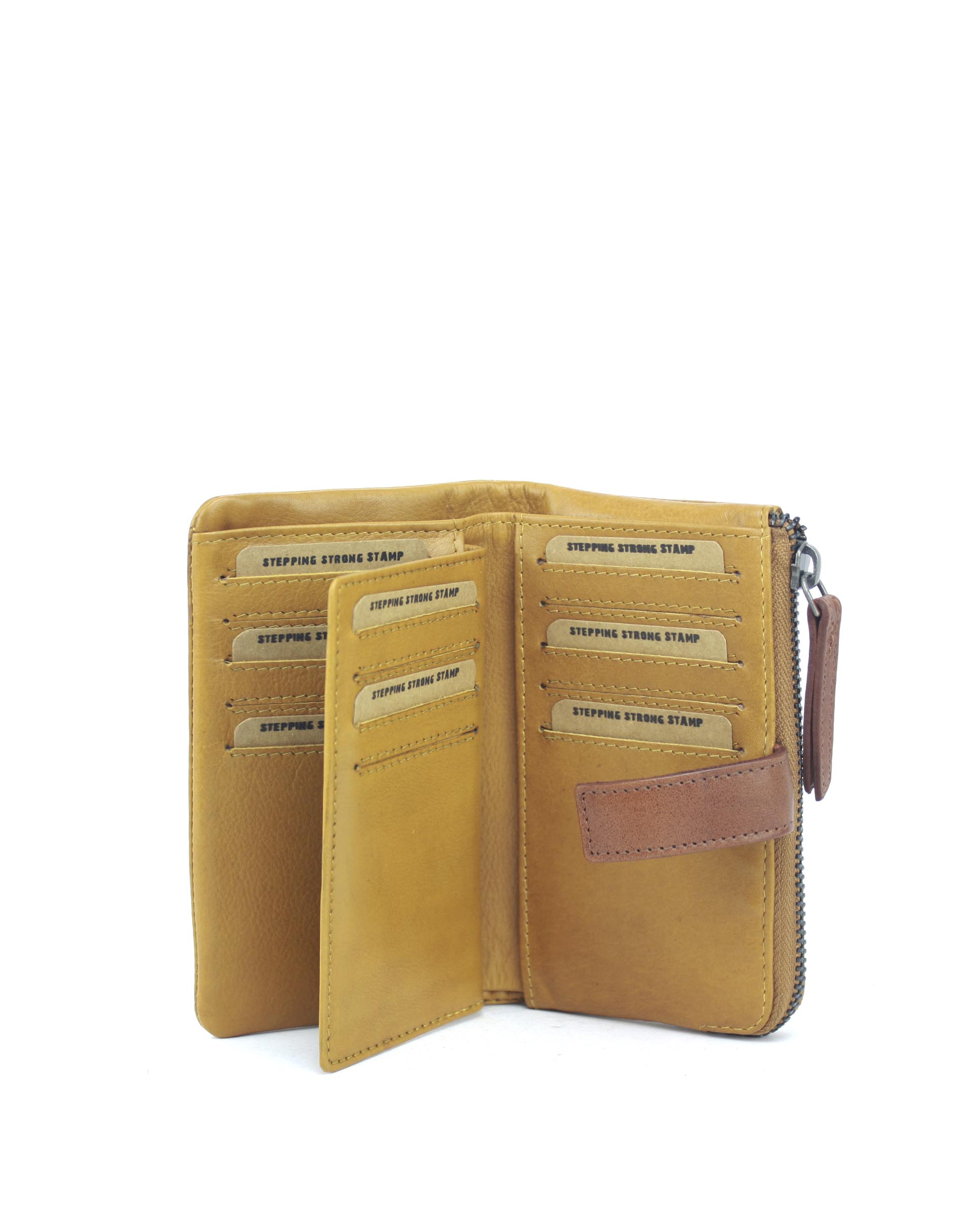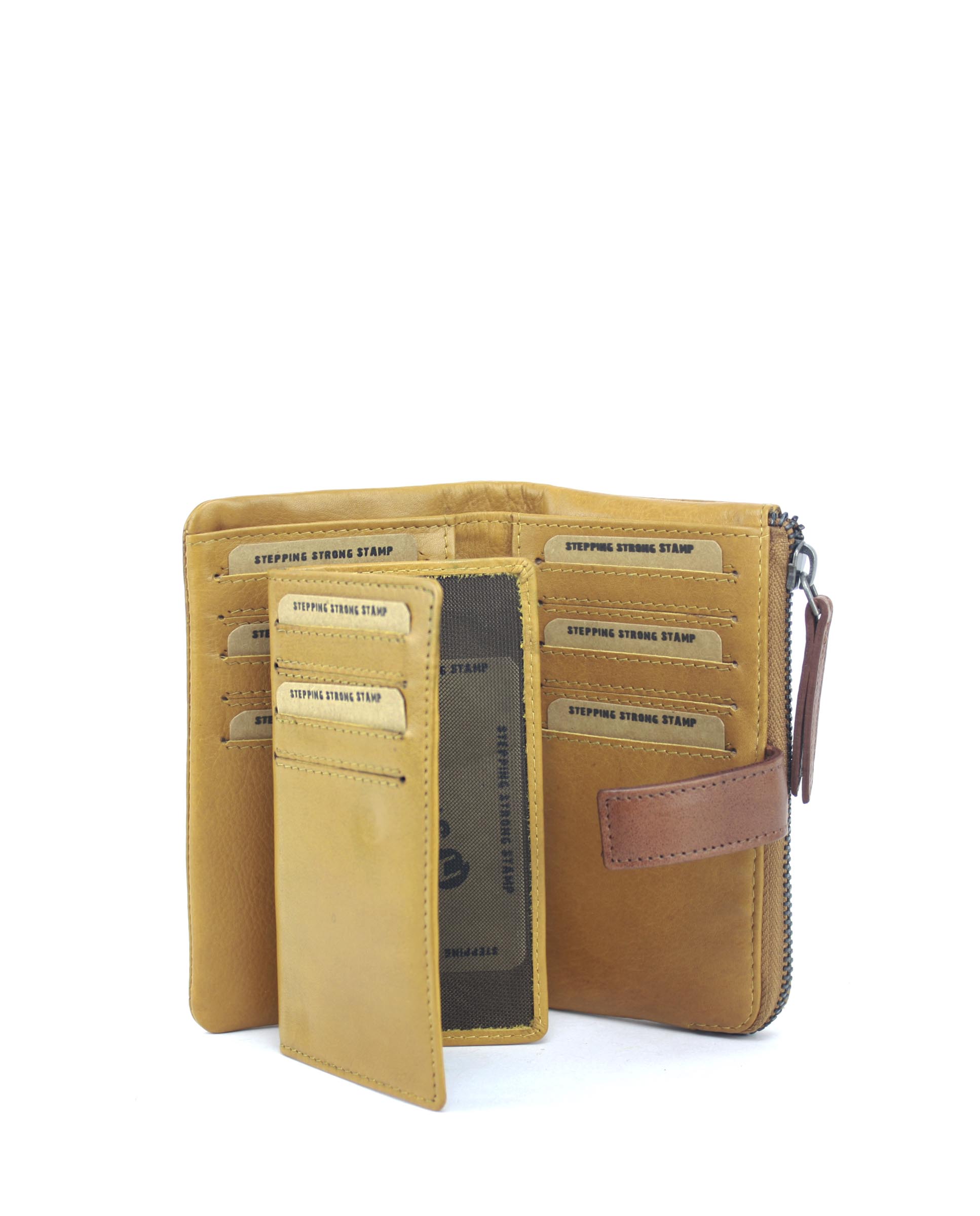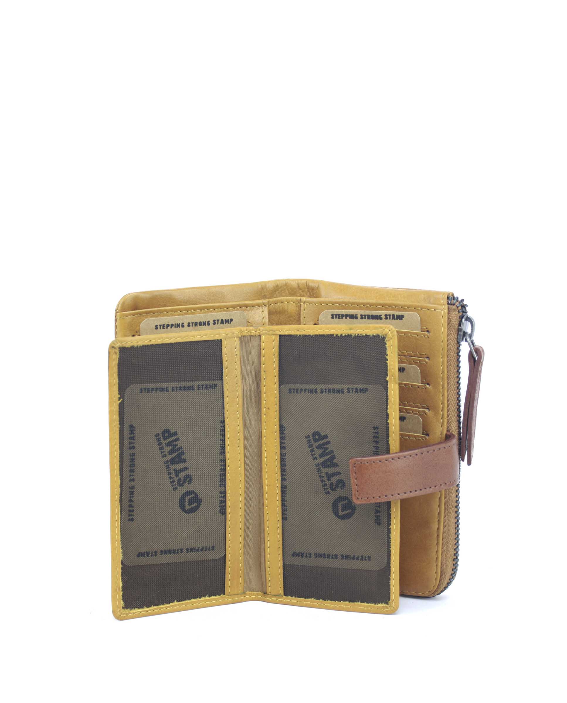 Cartera de mujer fabricada en piel lavada de primera calidad. La colecci贸n Chara de Stamp sigue pisando fuerte y se ve ampliada con nuevos modelos, desde mochilas hasta toda una nueva l铆nea de billeteros, tarjeteros y portamonedas. Como el modelo ST32004, fabricado con los mejores materiales, en color amarillo mostaza y con mucho espacio para ti: