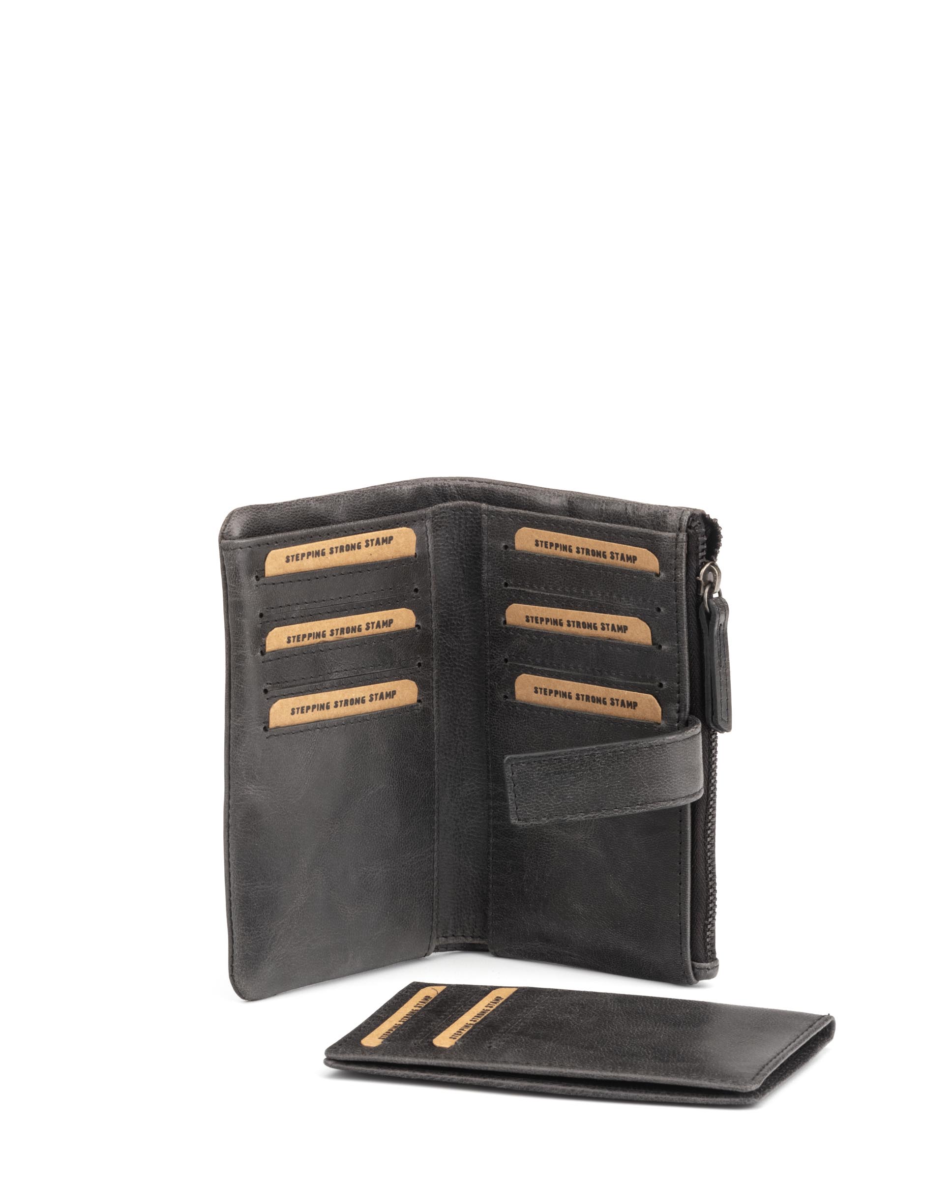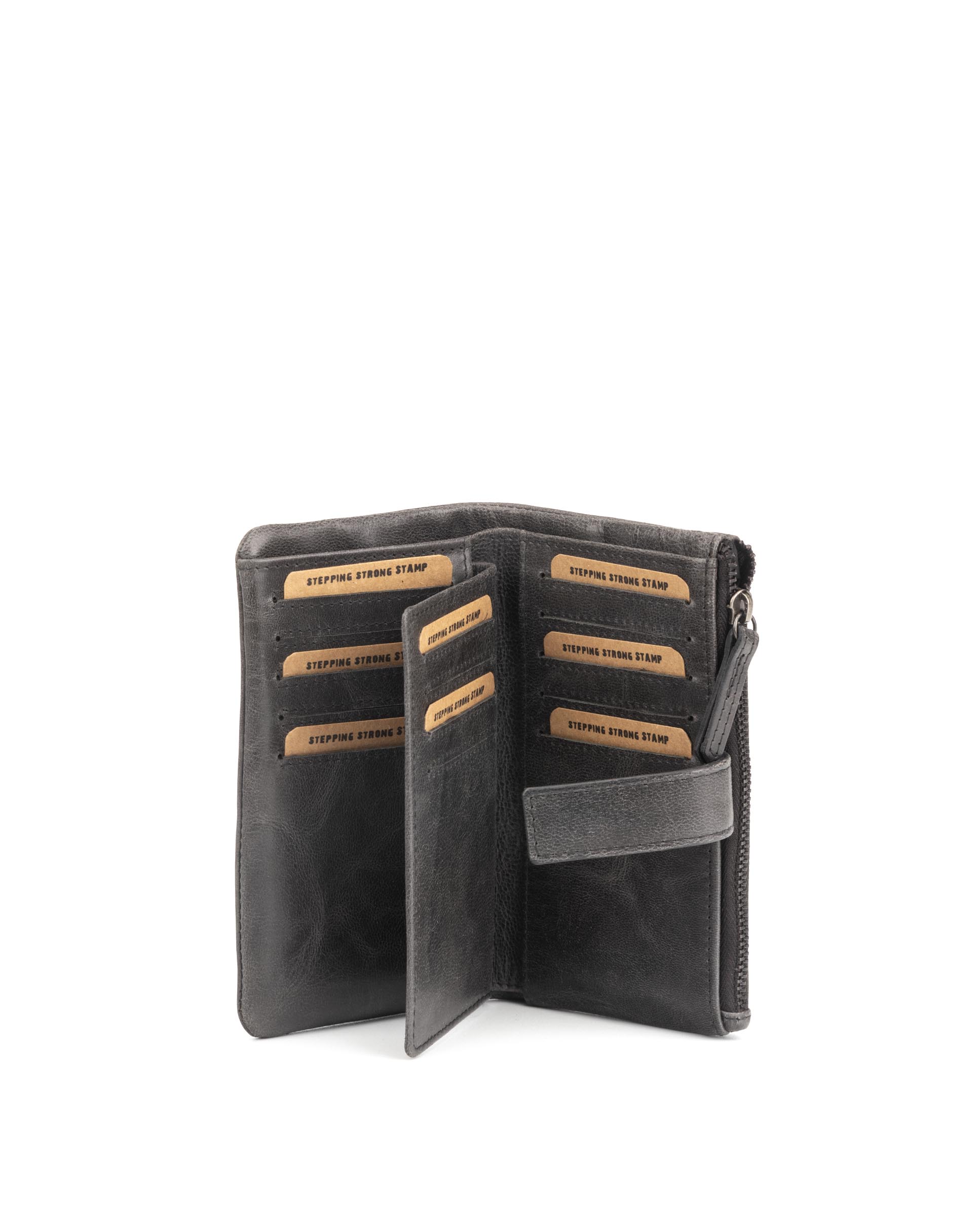 Cartera mediana de mujer en piel lavada ST52004 Marble negra