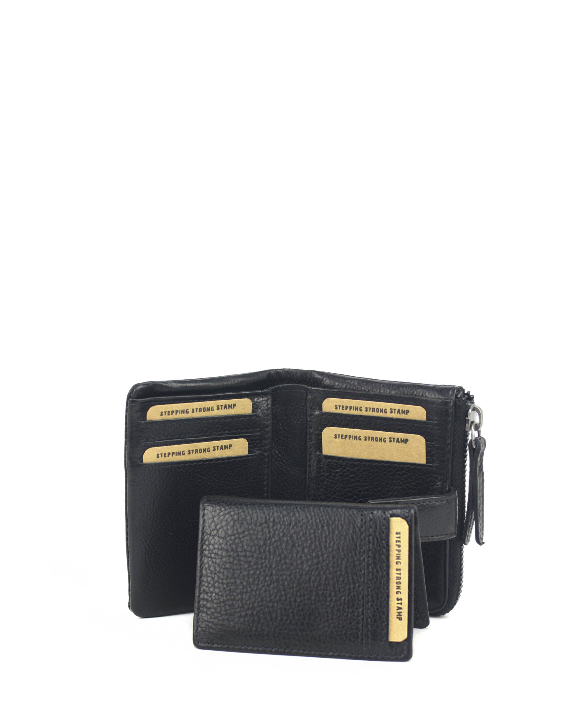 Cartera pequeña de mujer en piel lavada ST32001 Chara negra