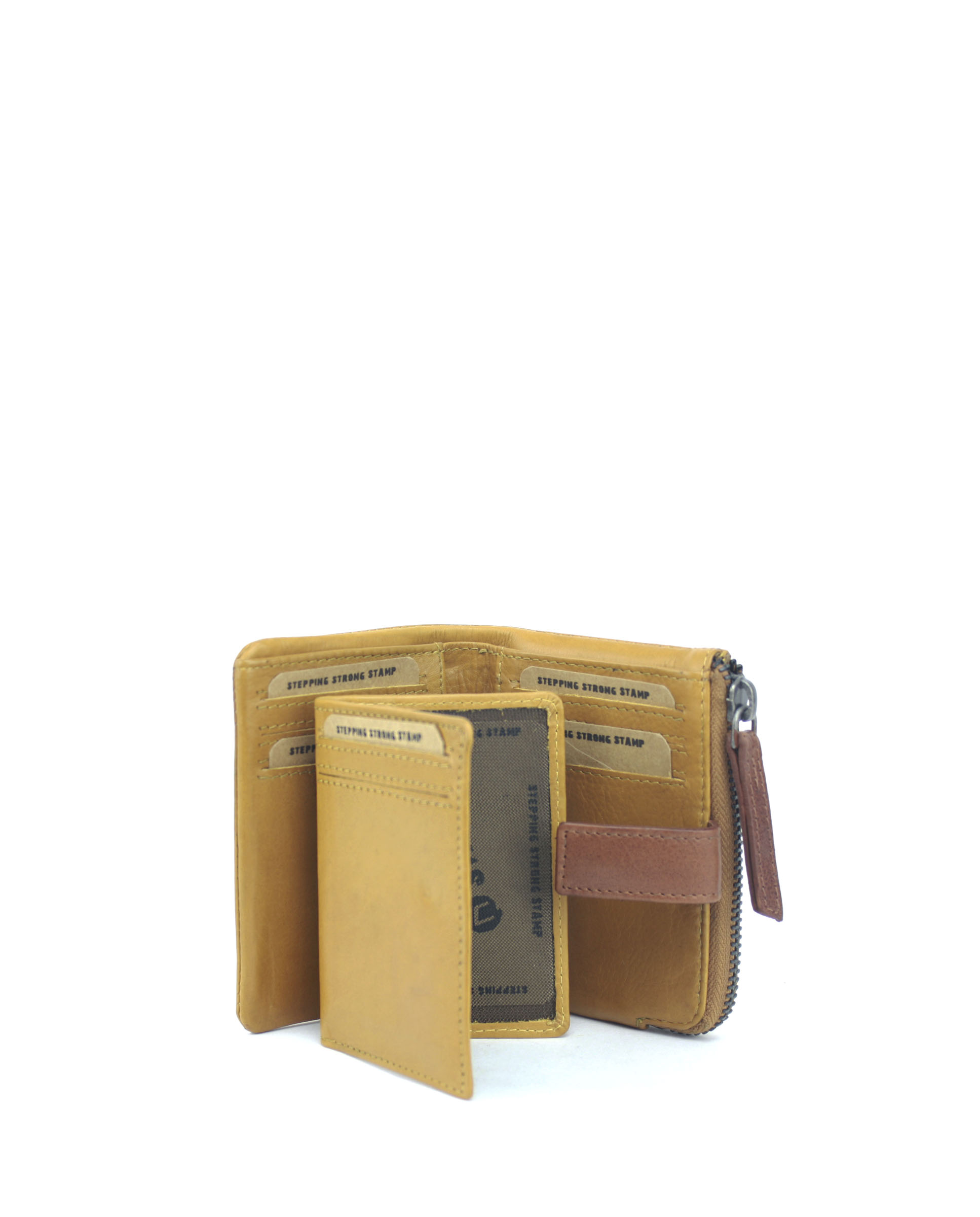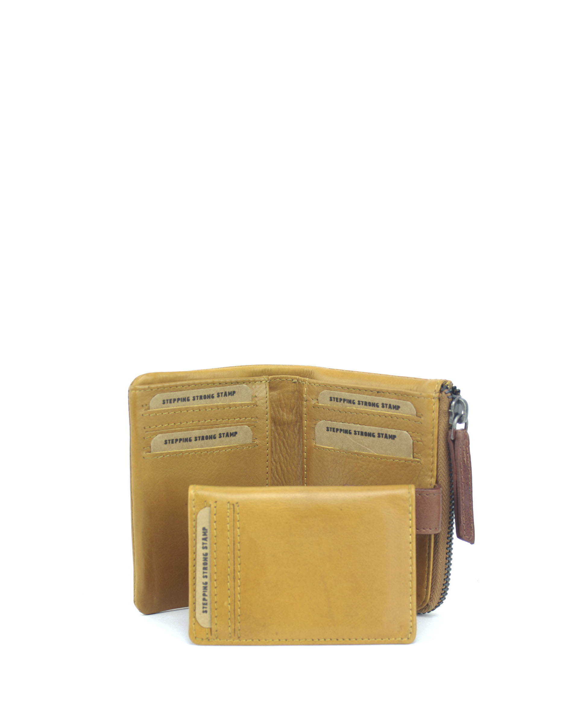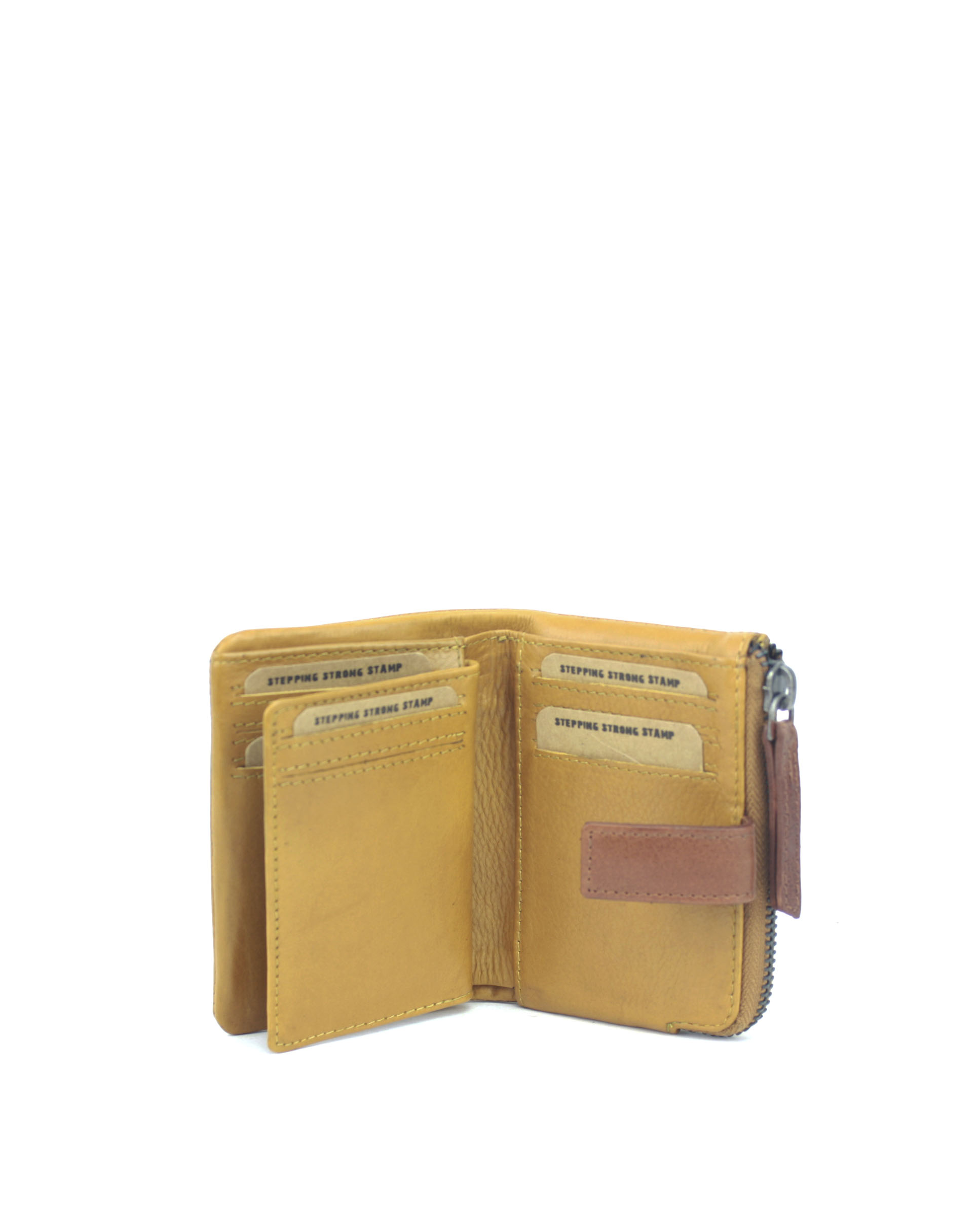 Cartera pequeña de mujer en piel lavada ST32001 Chara amarillo mostaza