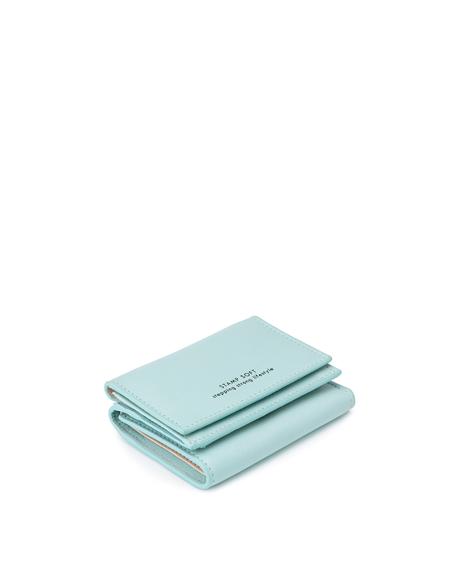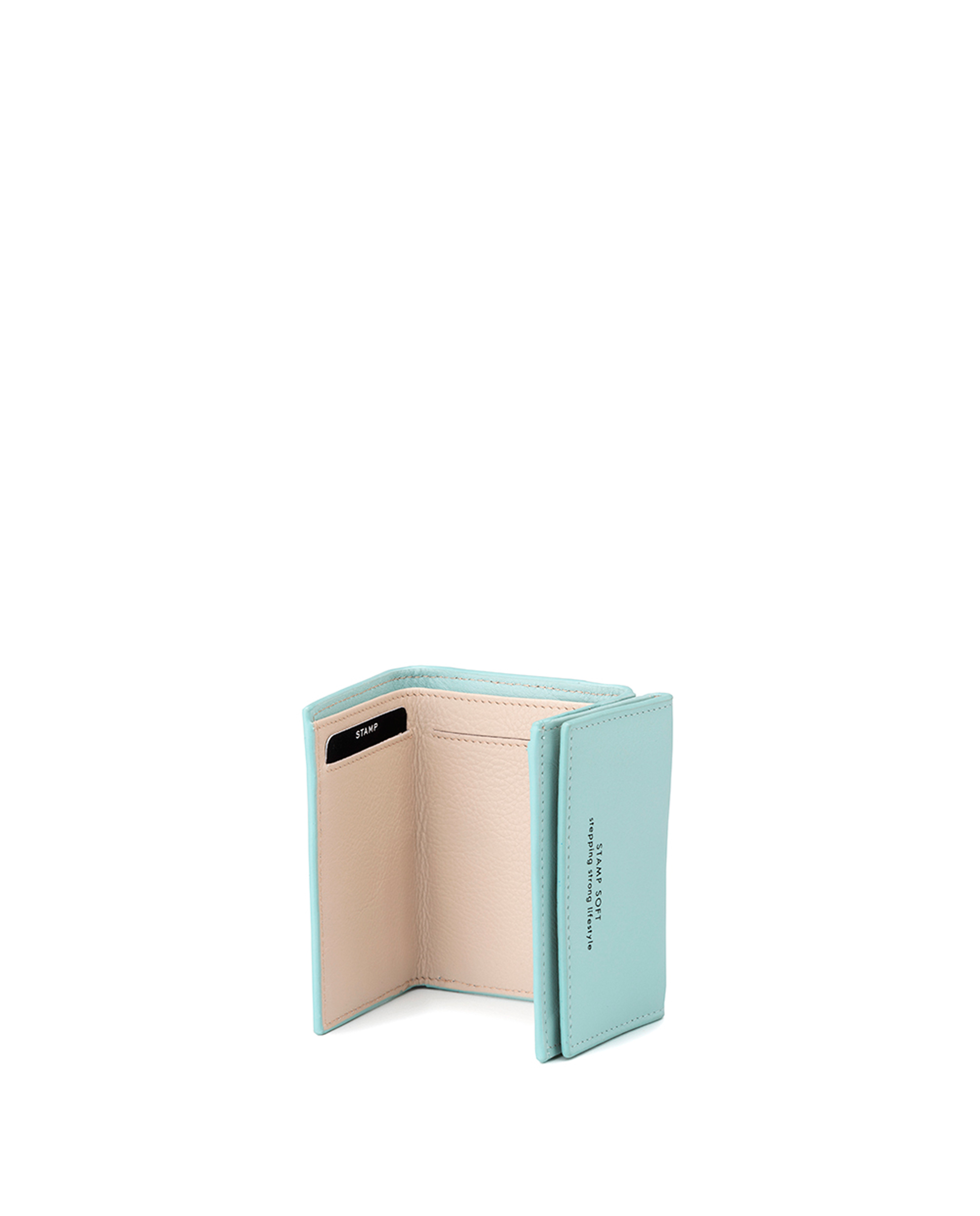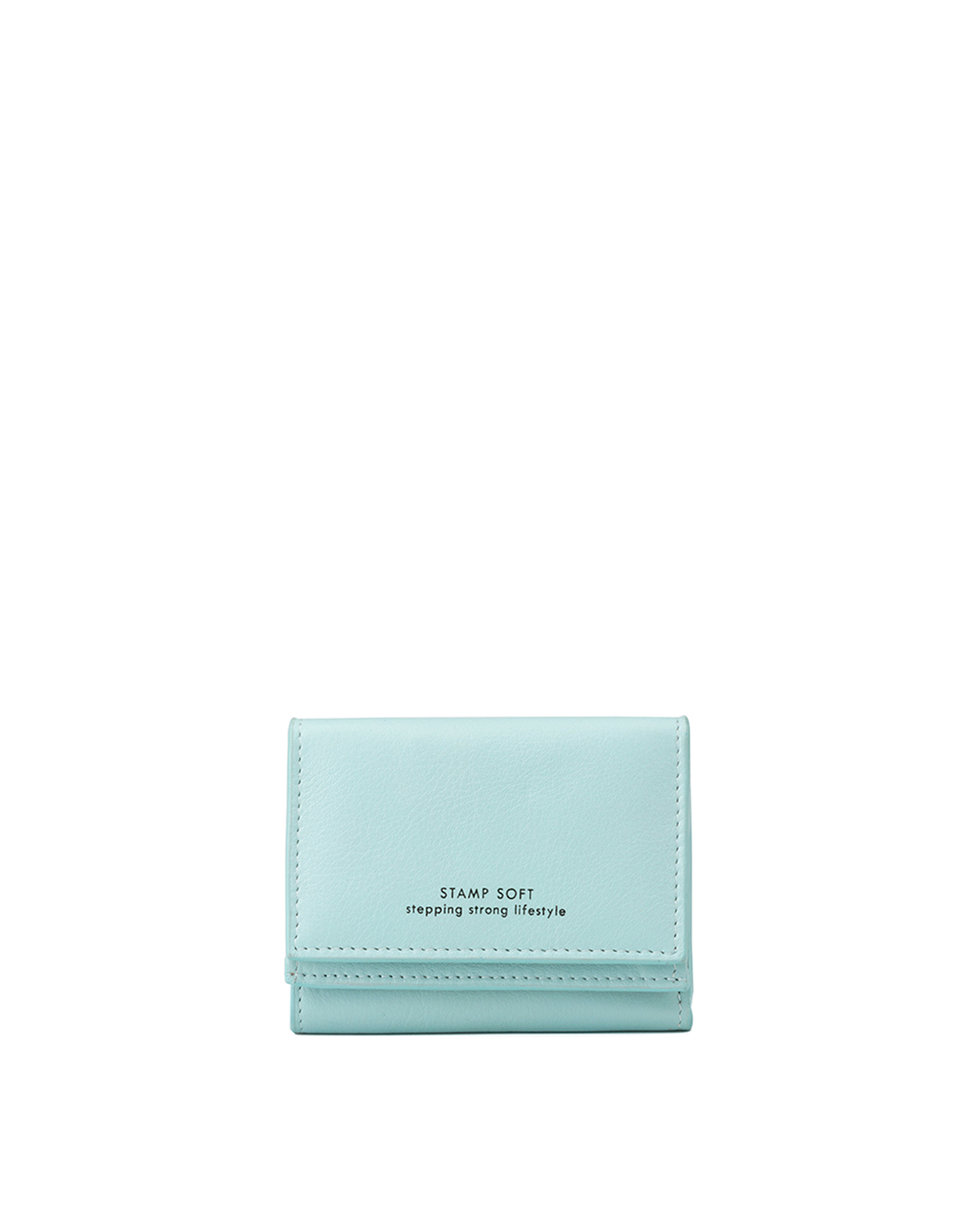 Billetero peque帽o de mujer Stamp fabricado en piel nappa de primera calidad. Doble solapa y cierre con clip. Unos de los departamentos tiene capacidad para tarjetas y billeteros y otro departamento es ideal para las monedas. Logo serigrafiado en contraste. Colecci贸n Petra.