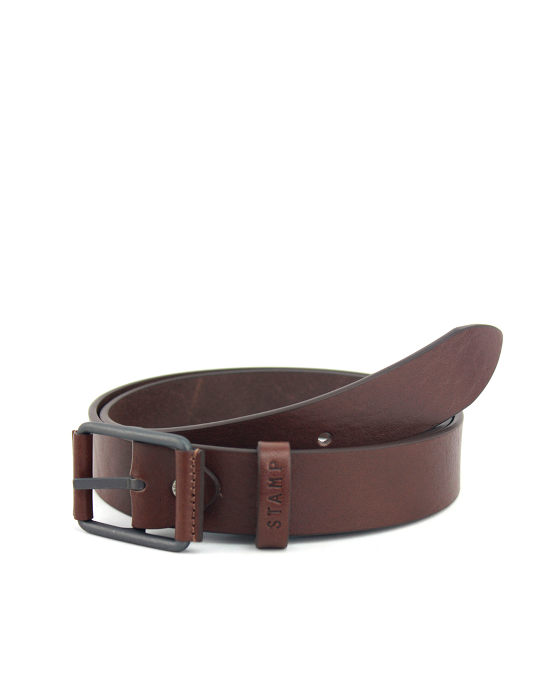 Correa Stamp de hombre fabricada en piel con hebilla met谩lica color plomo. Se adapta tanto a un vaquero como a un contexto m谩s formal: