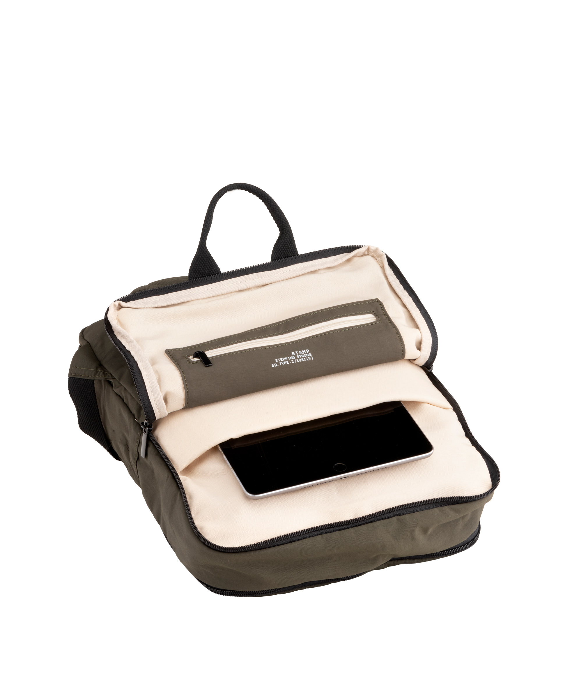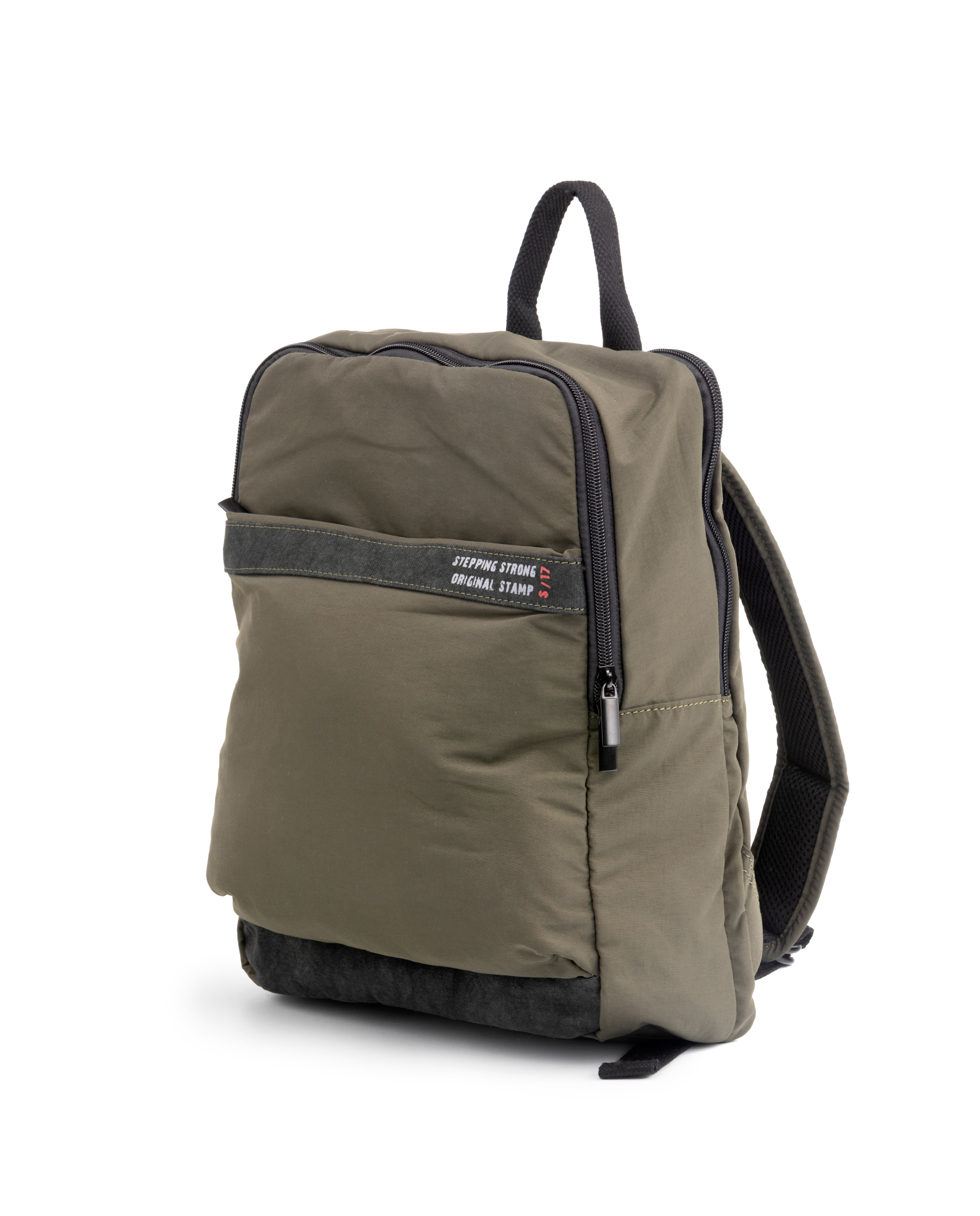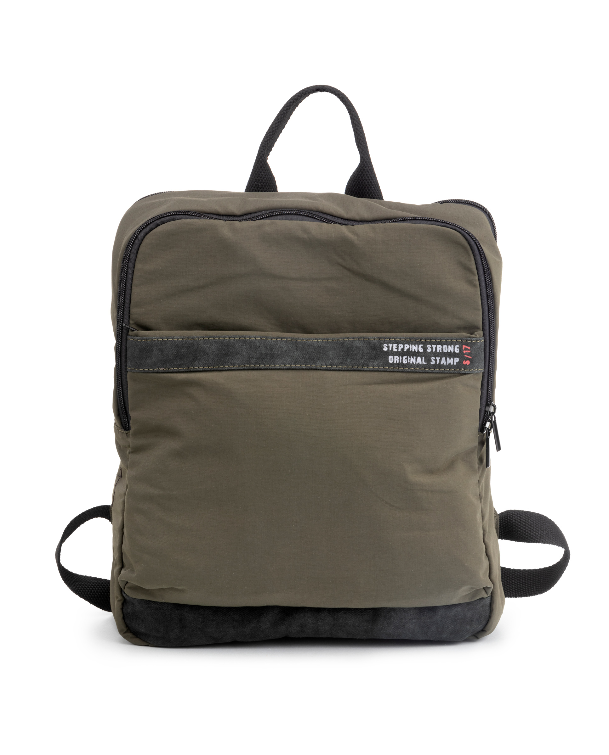 - logo ‘stepping strong original stamp’ impreso en una tira de lona en la parte frontal
