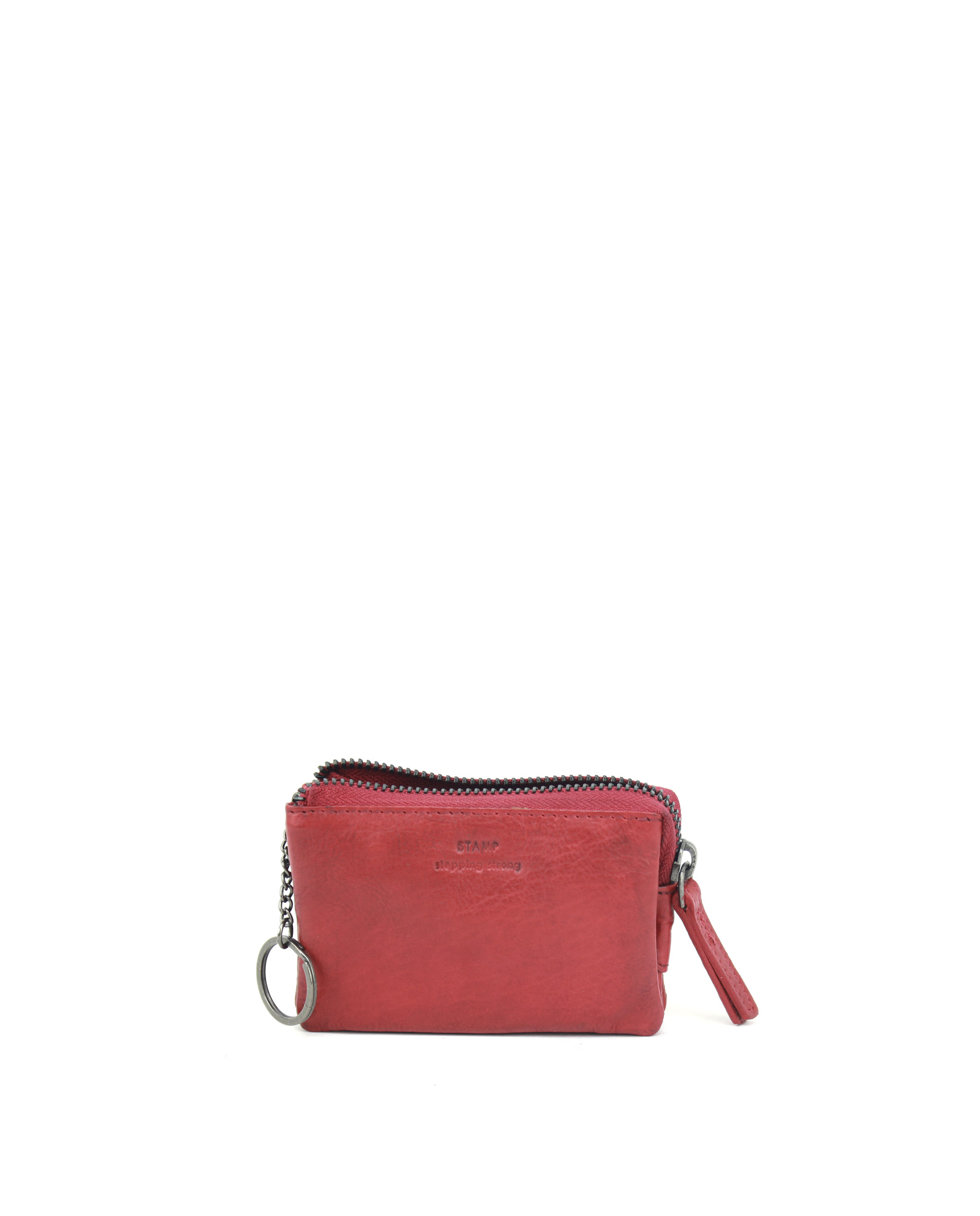 Portamonedas doble de mujer en piel lavada de primera calidad. La colecci贸n Chara de Stamp sigue pisando fuerte y se ve ampliada con nuevos modelos, desde mochilas hasta toda una nueva l铆nea de billeteros, tarjeteros y monederos. Como el modelo ST32007, fabricado con los mejores materiales, en color rojo y con llaveros en su interior: