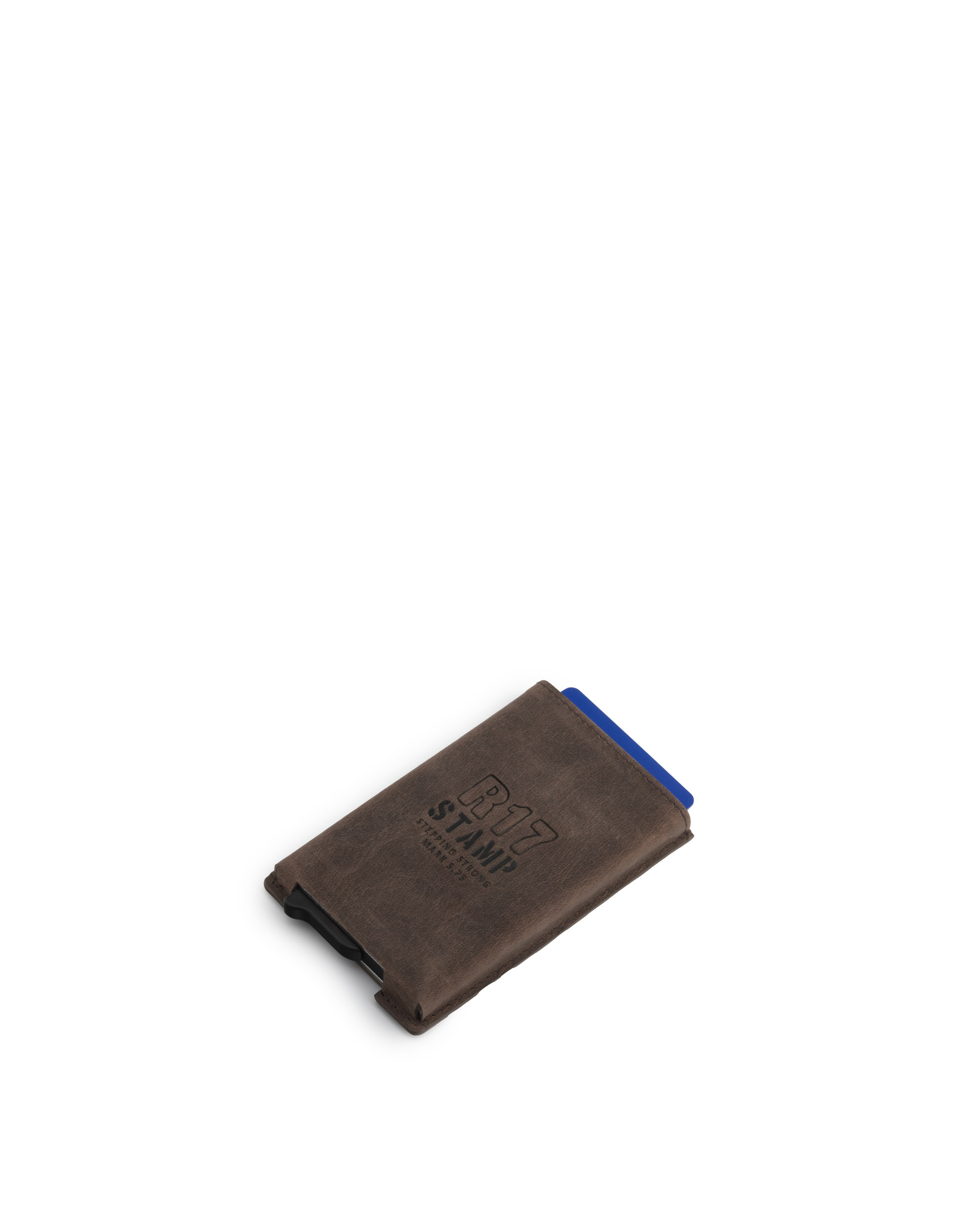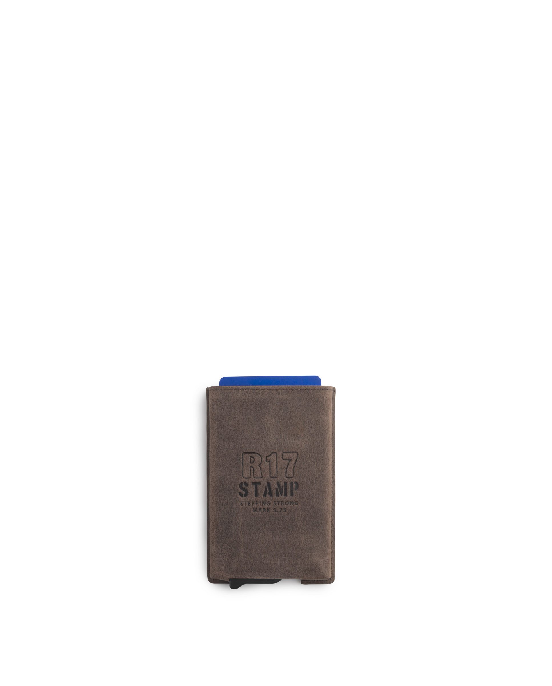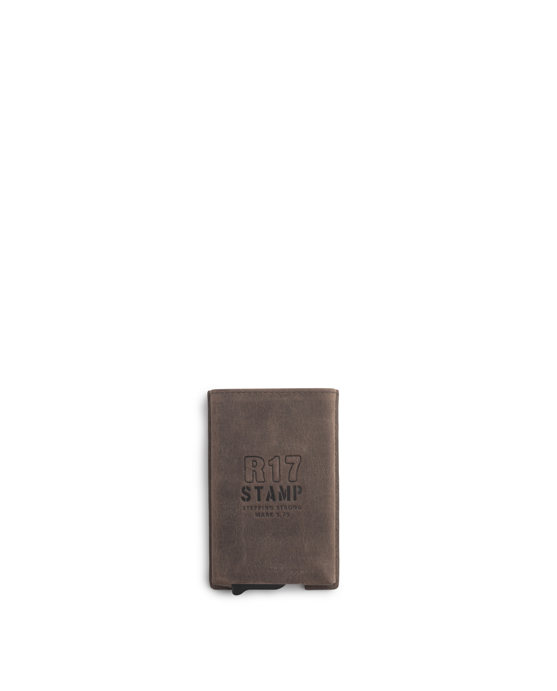 Tarjetero met谩lico ST28019 Flash de hombre forrado en piel marr贸n