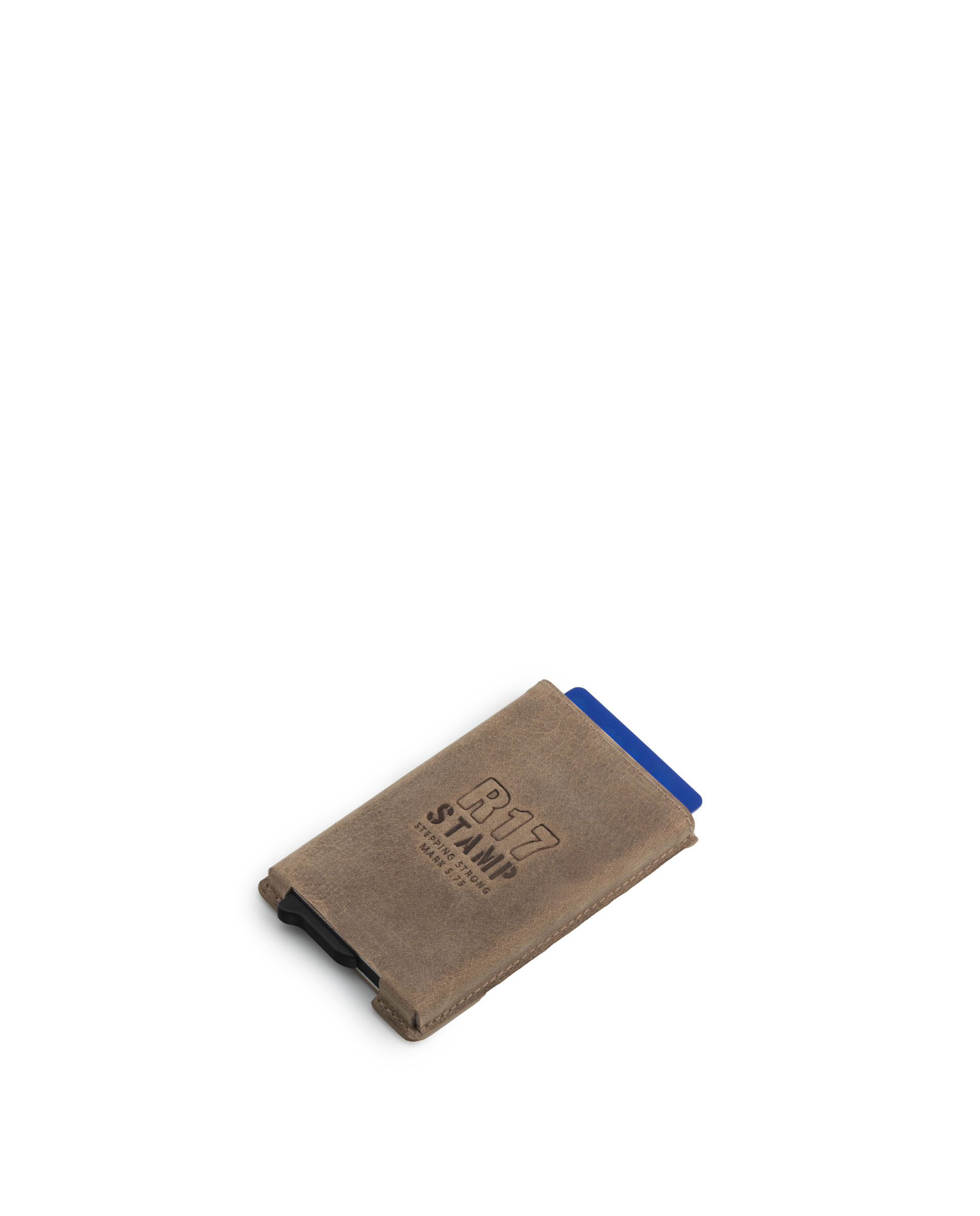Tarjetero metálico ST28019 Flash de hombre forrado en piel beige
