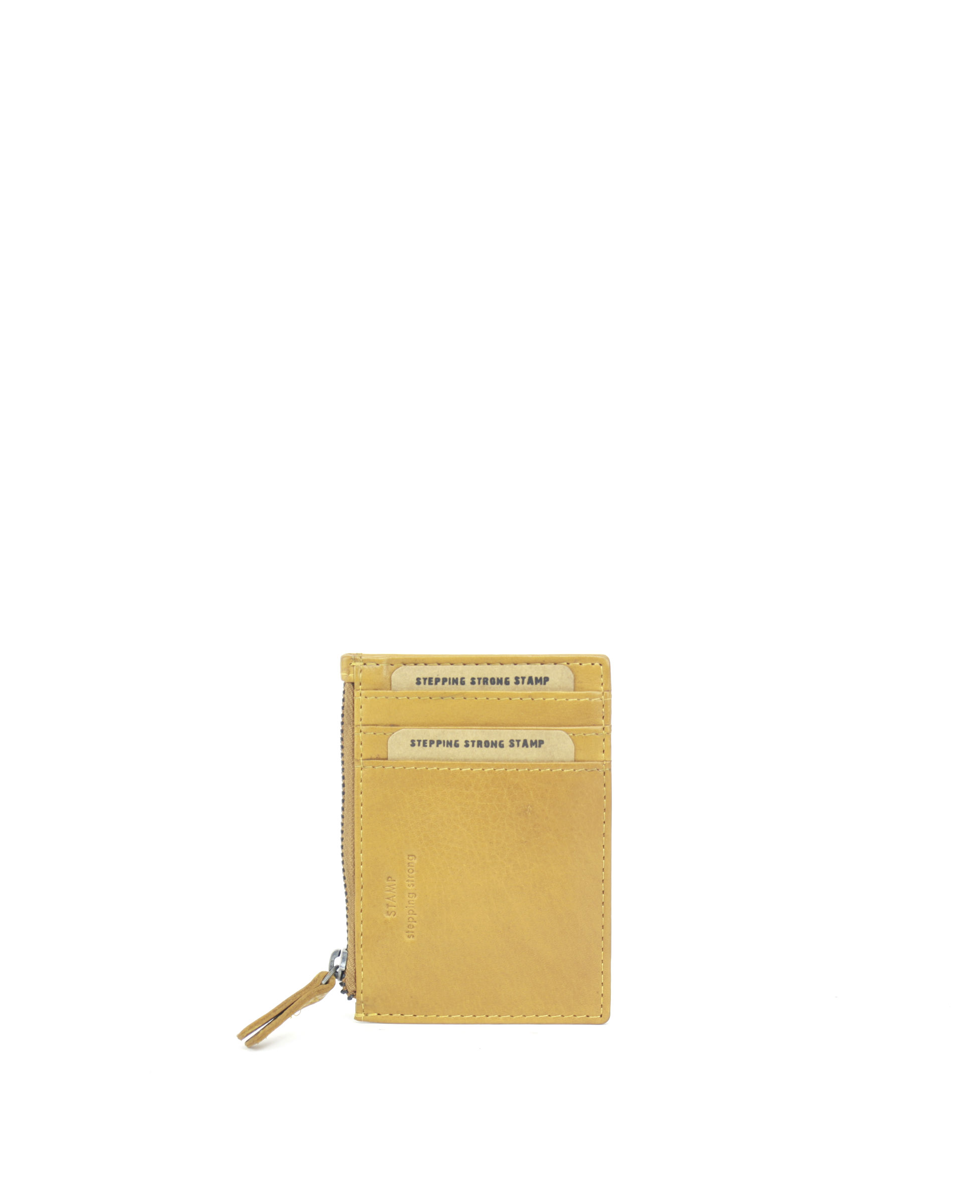Tarjetero pequeño de mujer en piel lavada ST32006 Chara amarillo mostaza